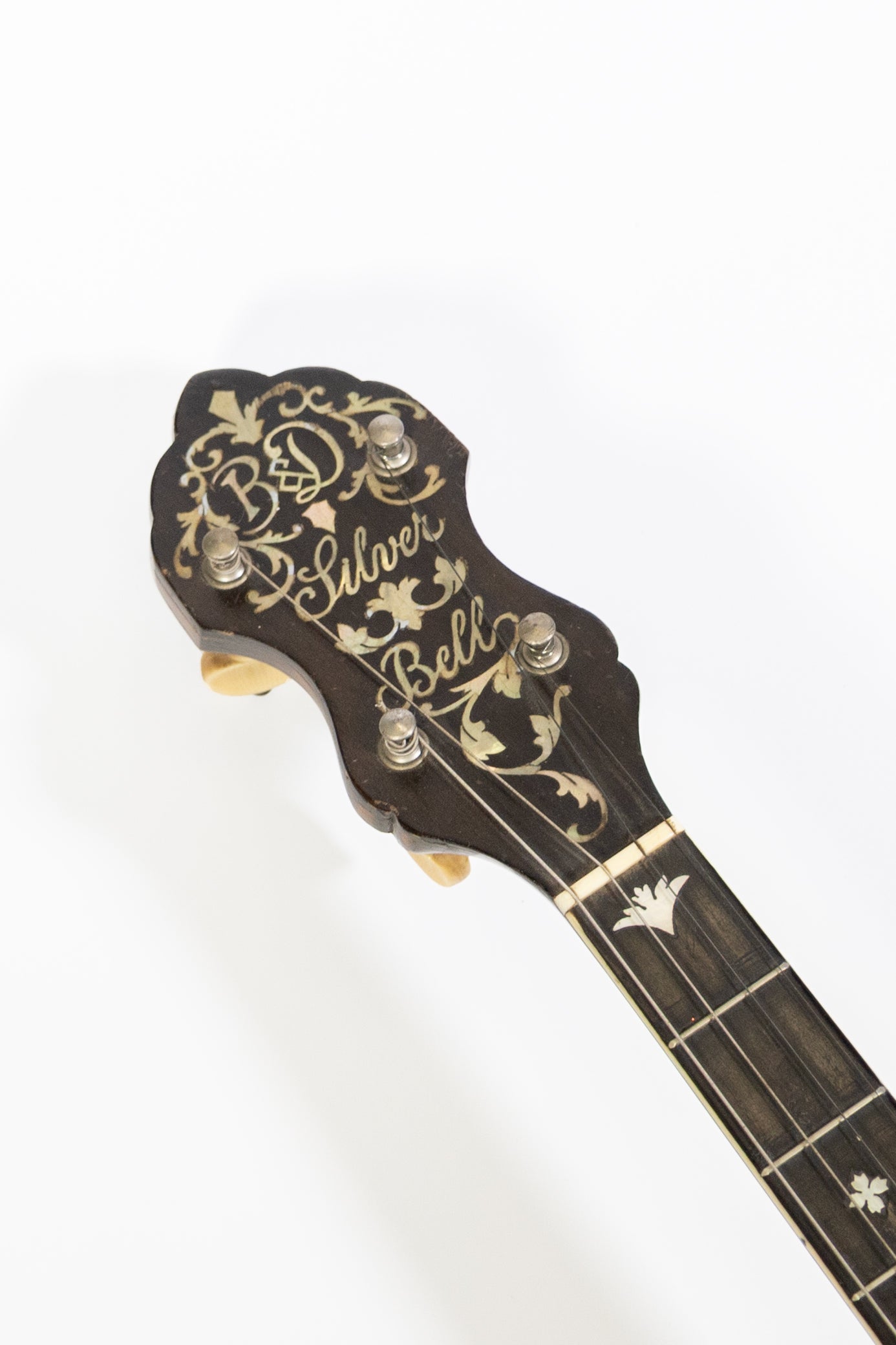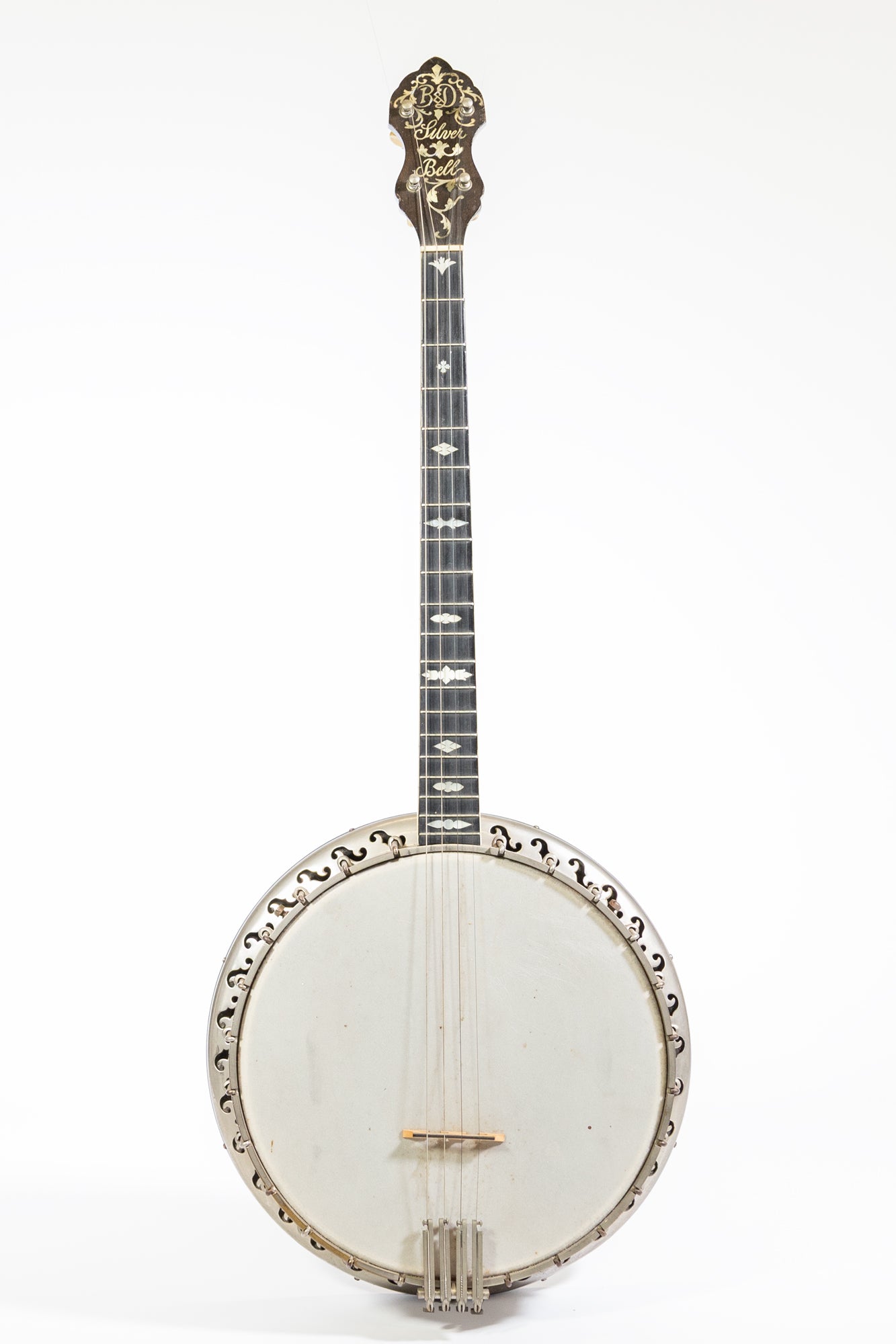 Produced in the 1920s, the Bacon & Day Silver Bell was one of the most respected banjos of its era, renowned for its tone and build quality. This example features a Style 1 stained maple rim and resonator with the patented flathead tone ring design that gave the Silver Bell its characteristic projection. It includes nickel-plated hardware and an Oettinger tailpiece.