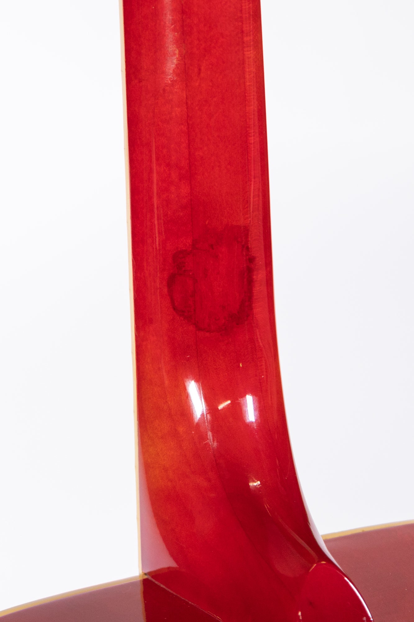 Constructed with a spruce top and cherry-stained maple back and sides, it produces a brighter, more articulate sound compared to the Hummingbird’s warmer tone. The neck has a slightly fuller profile than late 1960s examples, providing a comfortable and balanced playing feel.