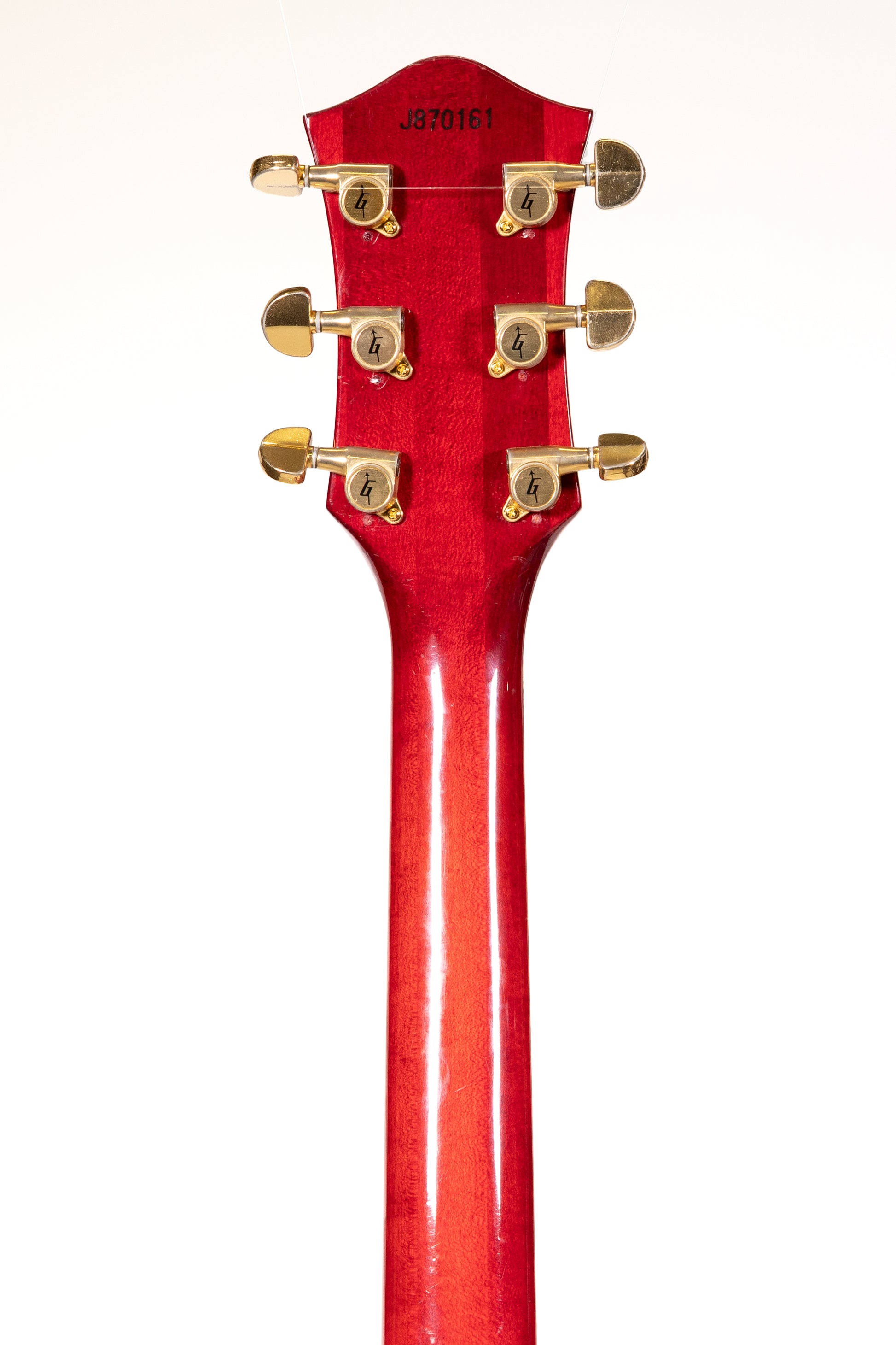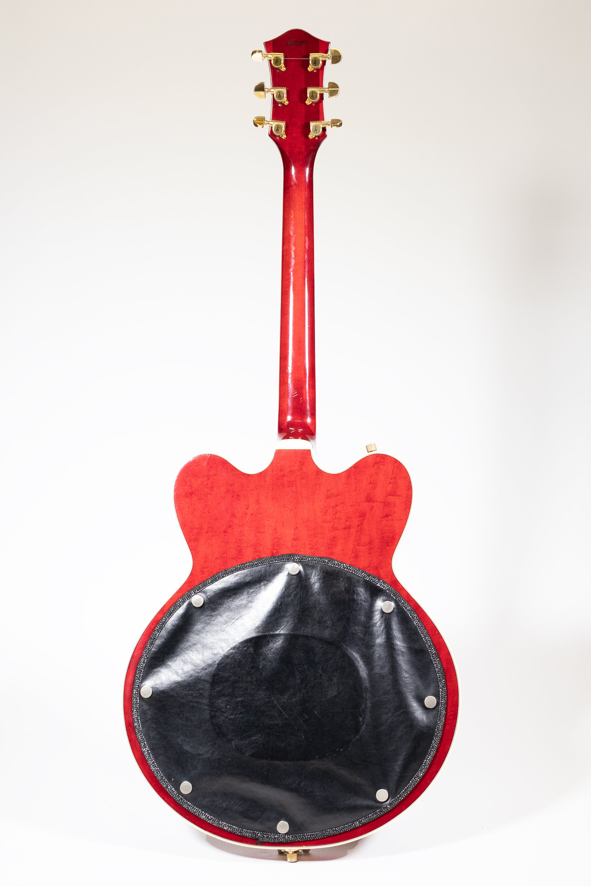 This 1987 Greco Country Artist is a rare Japanese-made recreation of the early ’60s Gretsch Country Gentleman, showcasing Greco’s remarkable attention to vintage detail. It features a full 17" wide thinline hollow maple body paired with a maple neck and bound rosewood fingerboard, combining elegant looks with excellent resonance. A set of Filter’Tron-style humbuckers delivers a wide palette of Gretsch-inspired tones, from bright, articulate twang to smooth, resonant warmth.