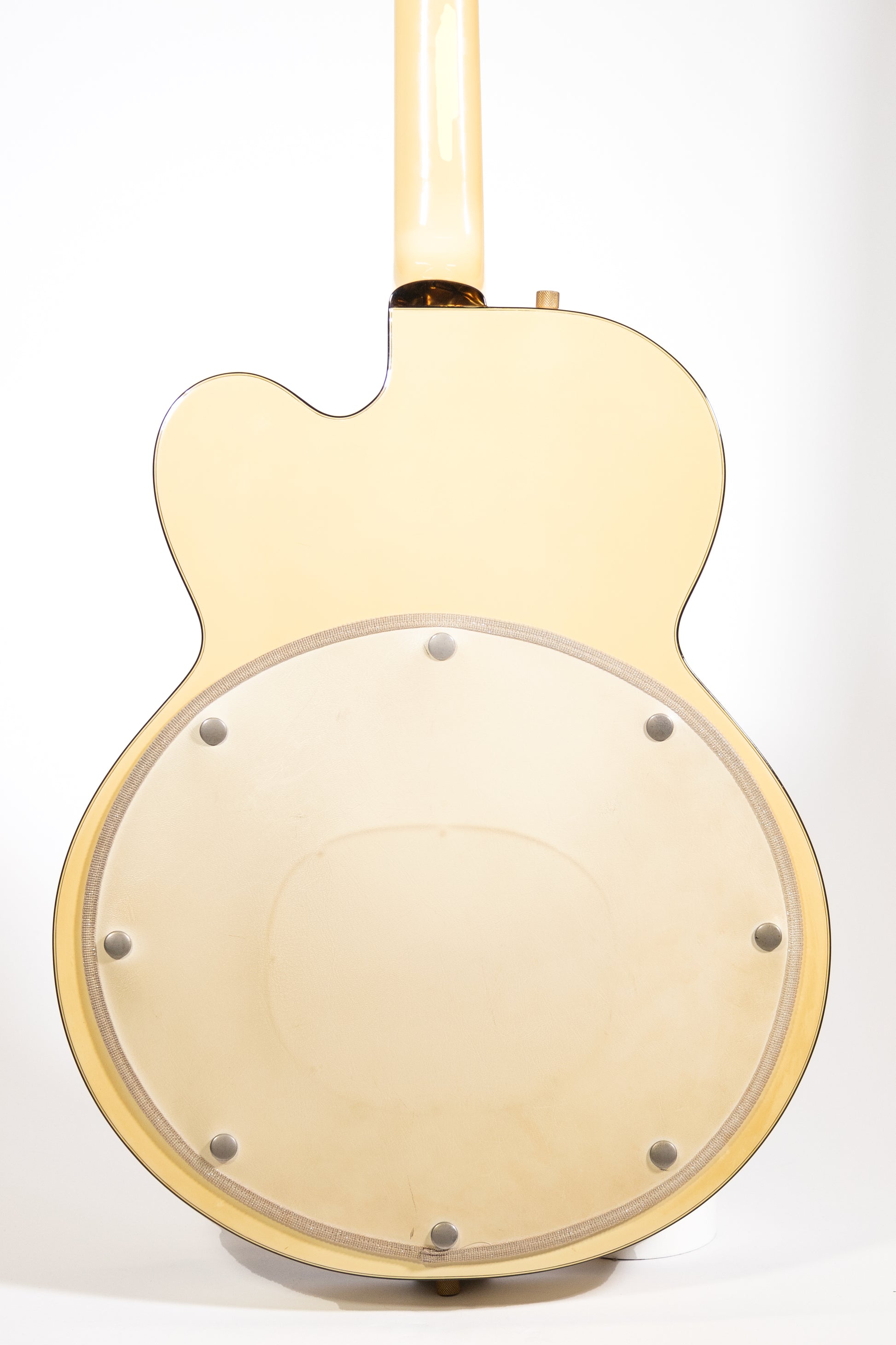This 1988 Greco White Falcon is a stunning Japanese-made interpretation of Gretsch’s most renowned model, showcasing the company’s meticulous approach to vintage reproduction. It features a full 17" wide hollow maple body finished in elegant white with gold hardware and intricate dark pearl binding, complemented by a maple neck and bound ebony fingerboard. Equipped with Filter’Tron-style humbuckers, it offers a wide spectrum of bright, articulate, and resonant tones reminiscent of the original White Falcon’s classic voice.