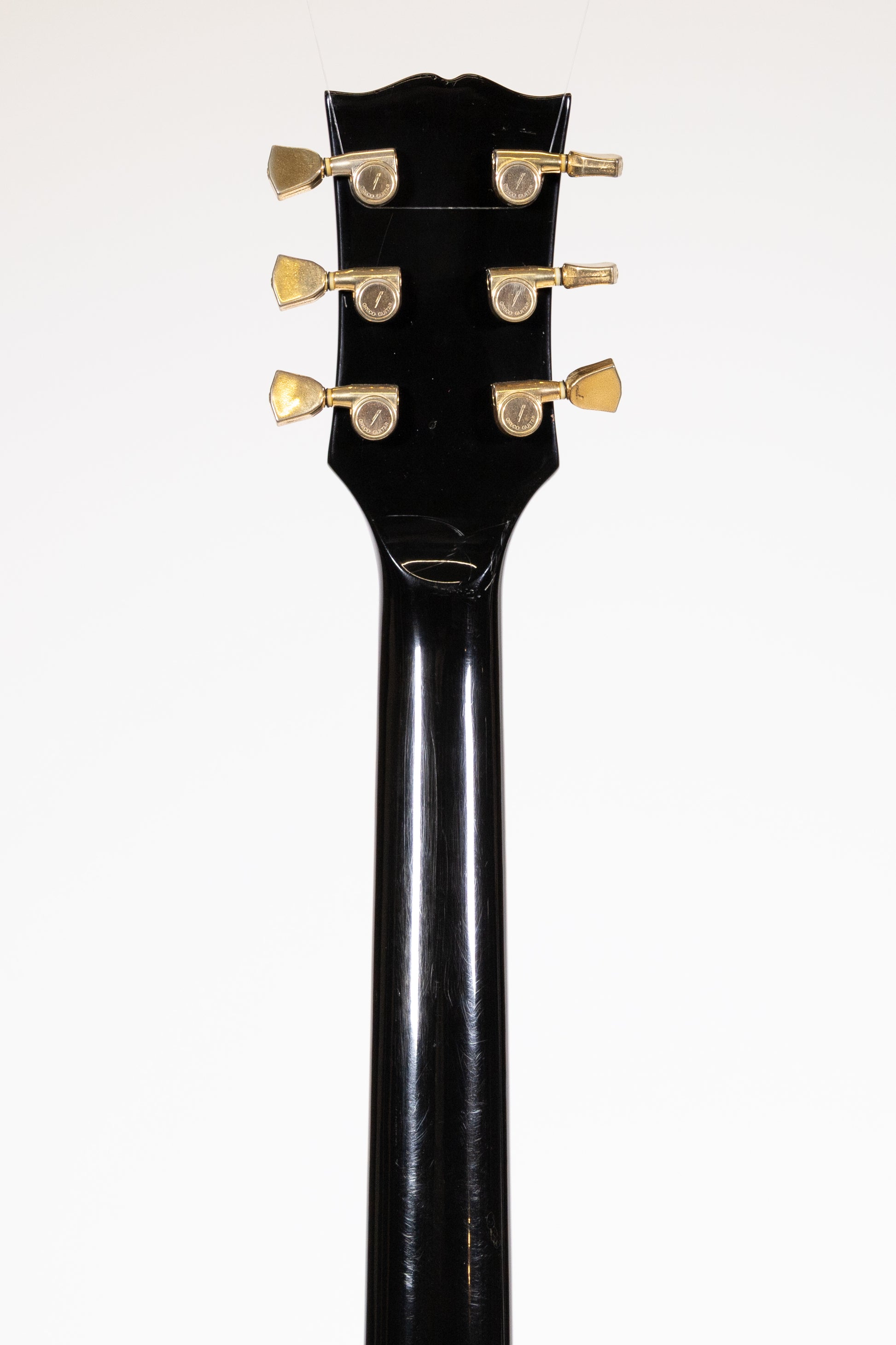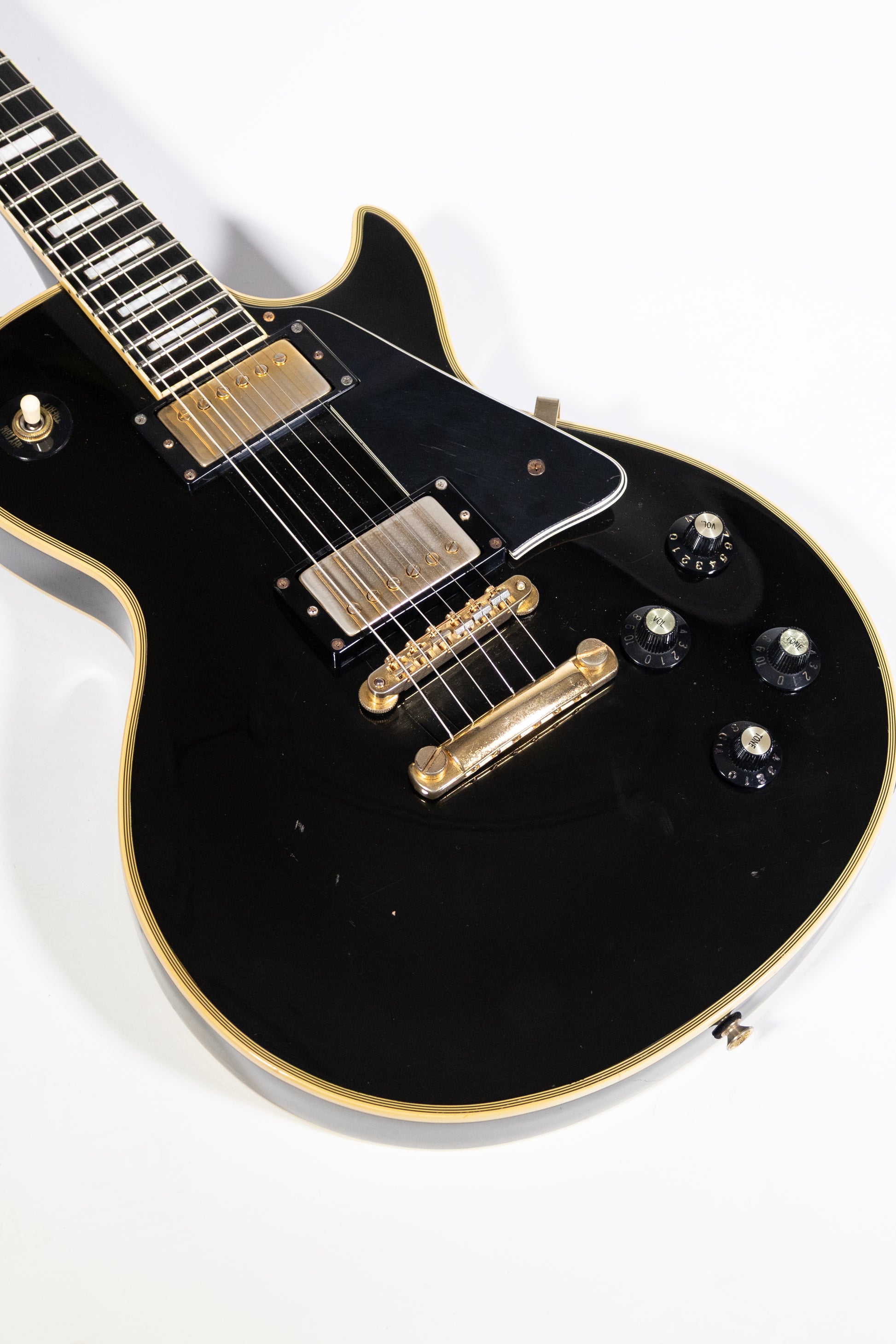 This 1990 Greco EGC-550 from the 'Mint Collection' is a refined Japanese-made Les Paul Custom-style instrument, built with a solid mahogany body, maple top, and a bound ebony-style fingerboard with block inlays. Equipped with its original Greco humbuckers, it is finished in classic black with gold hardware and multiple layers of binding.