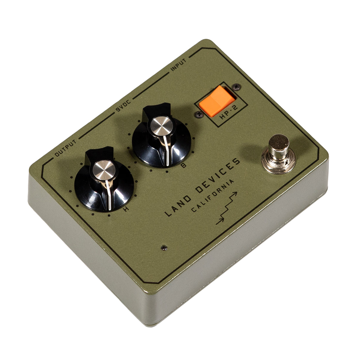 The Land Devices HP-2 in Army Green is a versatile distortion pedal designed to move between harmonic saturation and aggressive drive. It’s a straightforward yet highly dynamic unit, capable of delivering everything from a light boost to full-scale blown-out distortion. The HP-2 is built for players who want simple controls with a wide tonal range.
