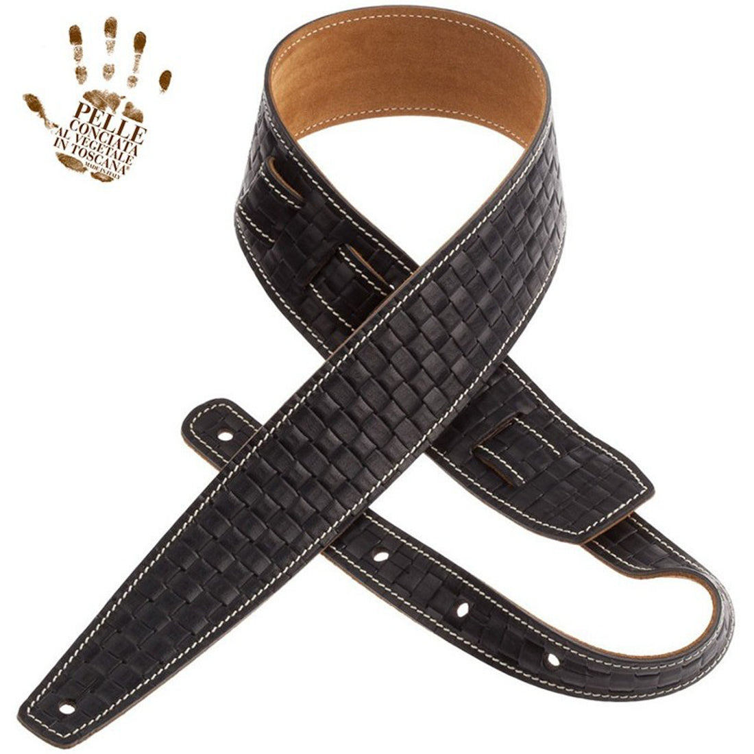 Leather Guitar and Bass Strap Holes HS Embossed Intreccio Black 6cm